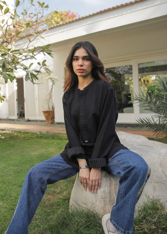 Two-Tone Beige Shirt & Beige Relaxed Jeans Look