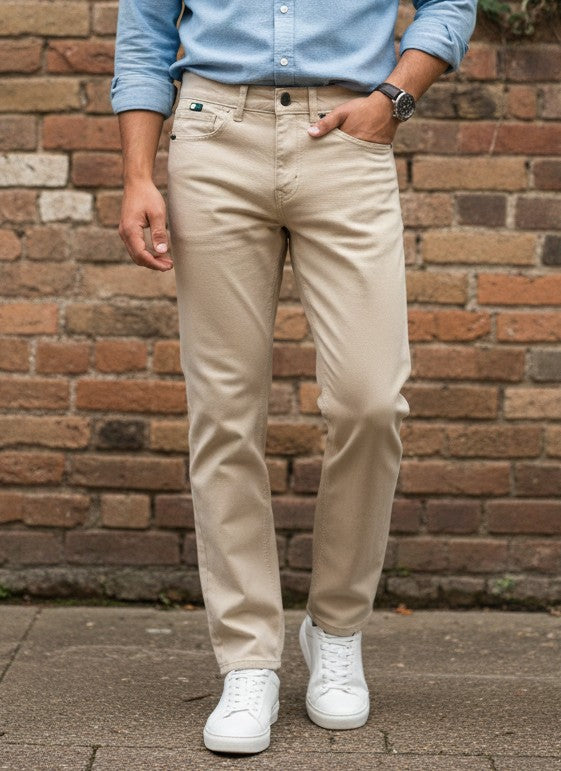 Experience understated elegance with these straight-fit jeans, designed for those who appreciate classic style. The streamlined silhouette features minimal embellishments and thoughtful construction that works with virtually any outfit. A rigid, durable fabric ensures lasting wear and maintains its shape through countless wears. The tapered leg gradually narrows from thigh to ankle, creating a refined proportion that flatters. Finished with a dependable zipper fly, these Beige jeans are the reliable foundation every wardrobe needs.