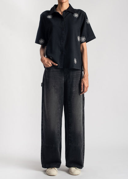 Black Floral Boxy Shirt