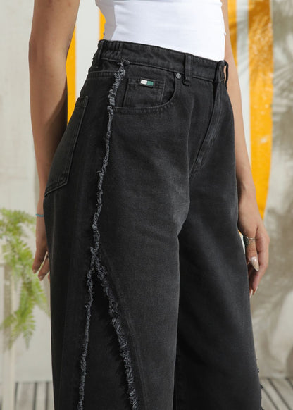 Elevate your denim collection with our Black Ruffle Skater Jeans. The distinctive skater pattern and thoughtful seam design create a flattering silhouette, while the side ruffle adds a touch of feminine flair. Engineered for both style and comfort, these versatile jeans transition effortlessly from day to night. Don't settle for ordinary denim when you can make a statement with every step.