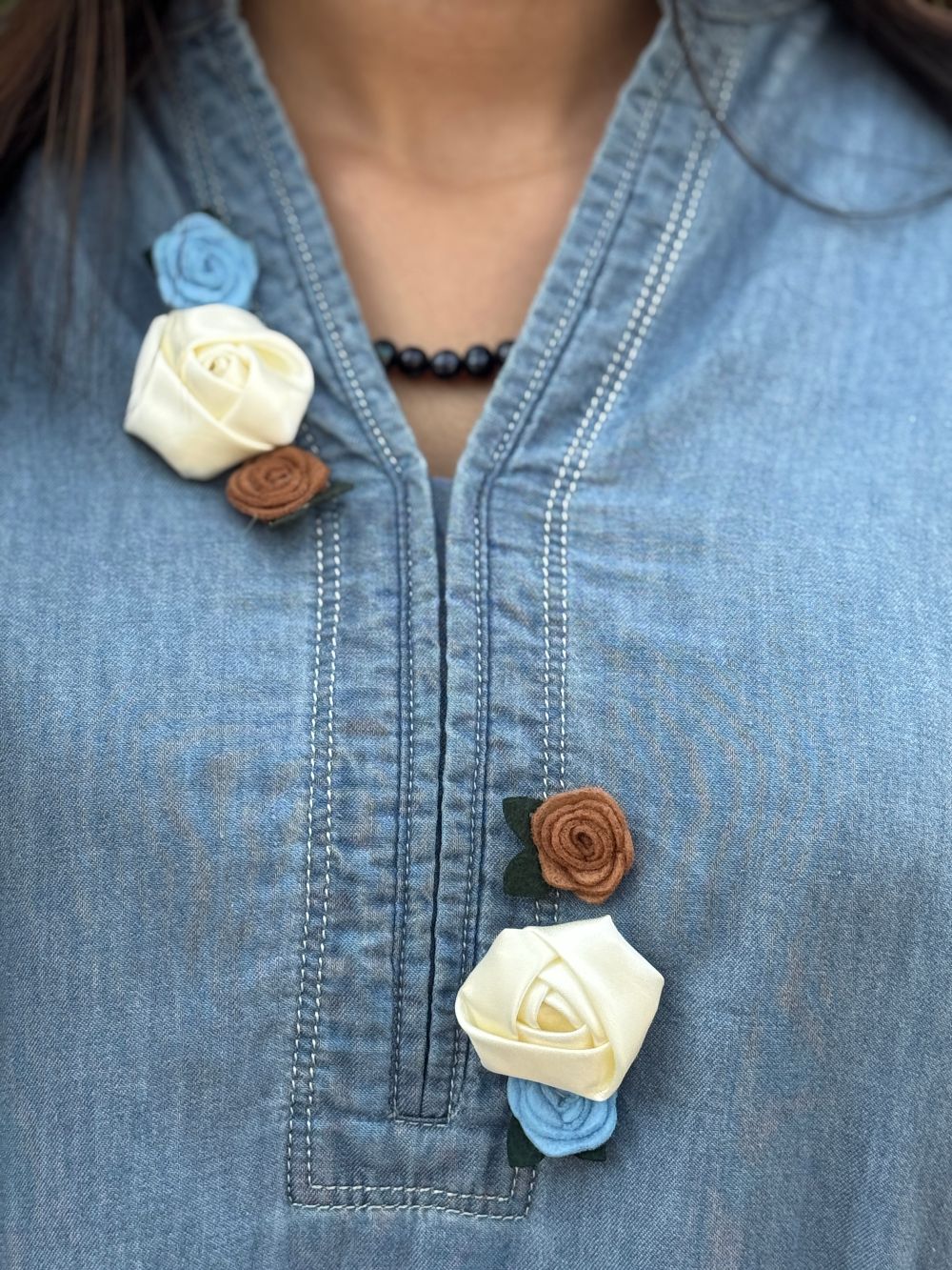 Discover understated elegance with our Light Blue Co-ord Set, a fresh take on contemporary dressing. This charming two-piece showcases delicate floral patches artfully arranged around the neckline, adding a feminine touch to the crisp tunic. Contrast stitching throughout creates visual texture and highlights the thoughtful construction. Soft, refined, and effortlessly wearable—this set brings together comfort and style in one cohesive package that celebrates modern femininity.