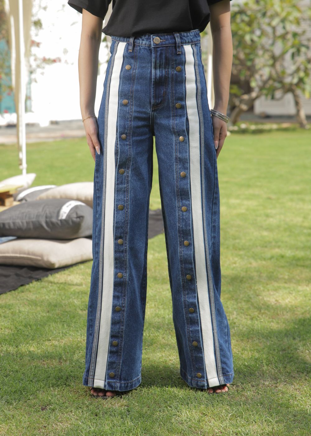 Experience ultimate comfort and style with our Striato Dark Blue Flare Jeans! The open button style not only adds a trendy touch, but also ensures a comfortable fit. Elevate your wardrobe with these must-have jeans that effortlessly blend fashion and function.